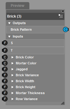 Creates the traditional staggered brick pattern. For a more realistic effect, synchronize with a Displacement Root brick and a Brick Displacement brick.